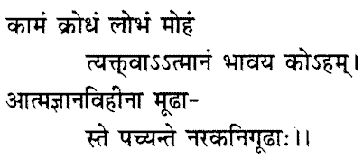 Leaving off egocentric desire, anger, greed and delusion, make self - inquiry: Who am I? They are fools who are without Self-knowledge: as captives in Hell, they are tortured.