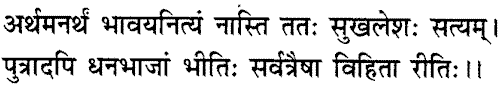 Wealth is no good: Thus reflect always. There is not the least happiness therefrom: This is the truth. For the wealthy, there is fear even from the son; everywhere this is the regular mode.