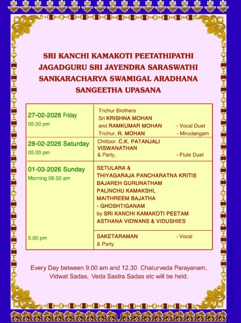 Eighth Aradhana Mahotsavam of HH Pujyashri Jayendra Saraswathi Shankaracharya Swamigal 27 Feb. -