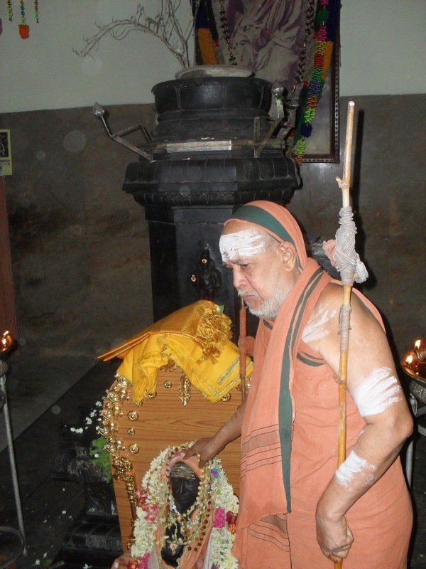 HH Swamiji returned to Sri Matam after performing special poojas at the temple situated on the bank of the Sarva Teertham . It was at this temple that HH Swamiji was initiated in to Sanyasa Ashram on 22nd March, 1954 by His Predecessor HH Sri Chandra Sekharendra Saraswathi Swamigal, reverentially called as Maha Swami .