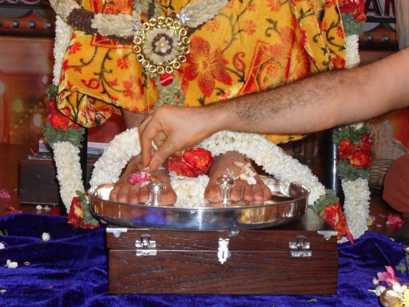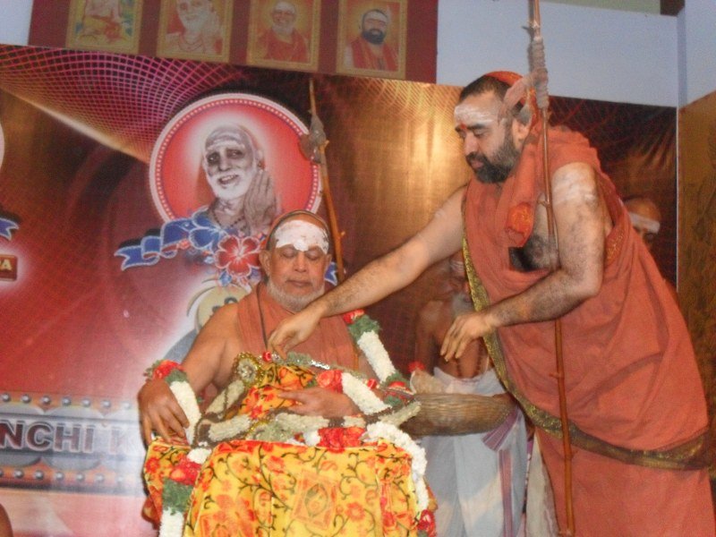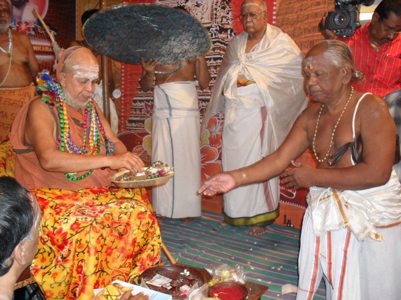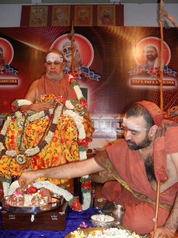 In the afternoon, Kanakabhishem with gold bilwa leaves was performed to His Holiness Swamiji by His Holiness Sri Vijayendra araswathi Swamigal , the 70th Acharya of Sri Matam