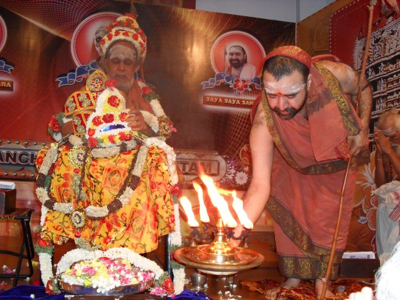 HH Swamij then performed the first session of Holy Pooja to Sri Maha Thripura Sundari Sametha Sri Chandra Mouleeswara Swami, the Presiding Deity of Sri Kanchi Kamakoti Peetam.