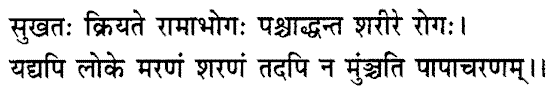 One easily takes to carnal enjoyment; afterwards, lo, there is disease of the body. Although, in the world, death is the refuge, even then one does not relinquish sinful ways.