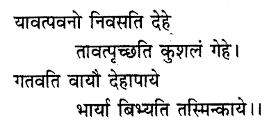 As long as there is breath in the body, so long people in the household ask about one's welfare. Once the breath leaves, on the destruction of the body, the dependents dread that very same body.