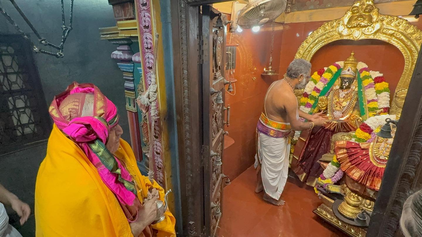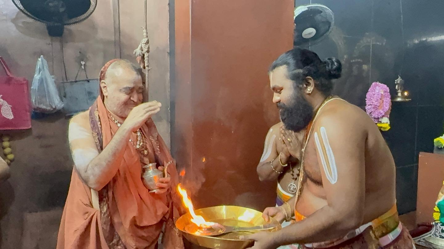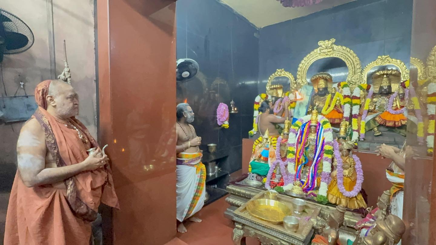 Mumbai Yatra updates - Shri Kanchi Kamakoti Peetadhipati Jagadguru Pujyashri Shankara Vijayendra Saraswathi Shankaracharya Swamiji visited Sri Ahobila Math at Chembur, #Mumbai this morning (29/11/2025). Visesha pujas and Sevas were performed at the various Sannadhis. Pujyashri Shankaracharya Swamiji blessed the devotees with Anugraha Bhashanam. #kamakoti
