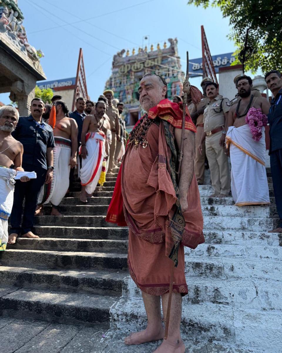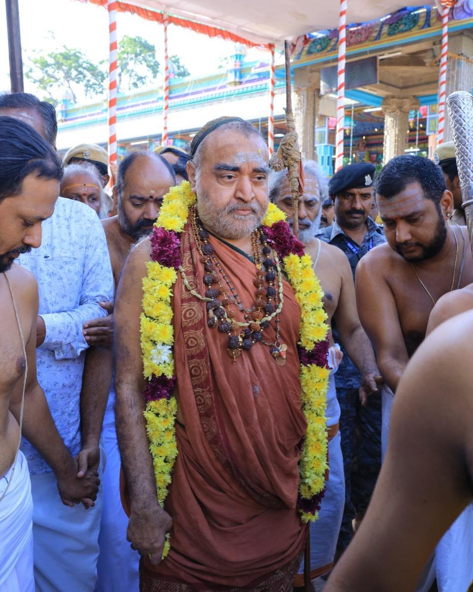 Shri Kanchi Kamakoti Peetadhipati Jagadguru Pujyashri Shankara Vijayendra Saraswathi Shankaracharya Swamigal visited Shri Karpagambalam sameta Sri Kapaleeshwara Swami Temple In Mylapore, Chennai this morning (5 Oct. 2025). The temple officials and priests accorded traditional swagatam with poornakumbham. Visesha pujas were performed. Aabharanam (nose-stud) samarpanam was performed and adorned to Sri Karpagambal. A large number of devotees witnessed the event. Pujyashri Shankaracharya Swamigal blessed the devotees with Anugraha Bhashanam.