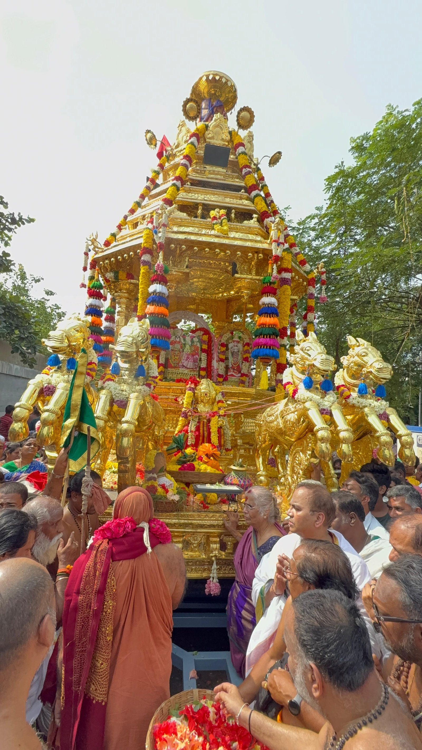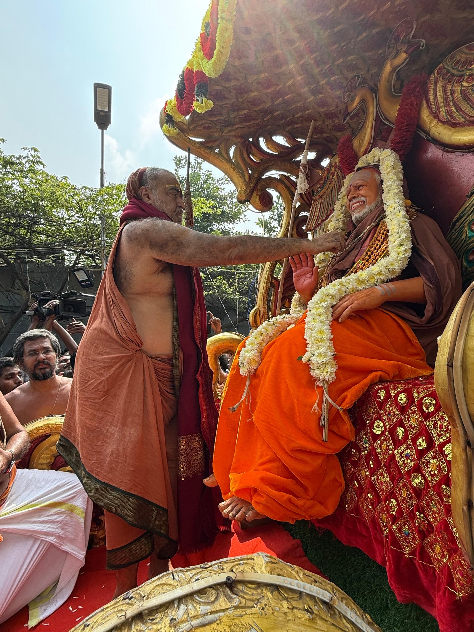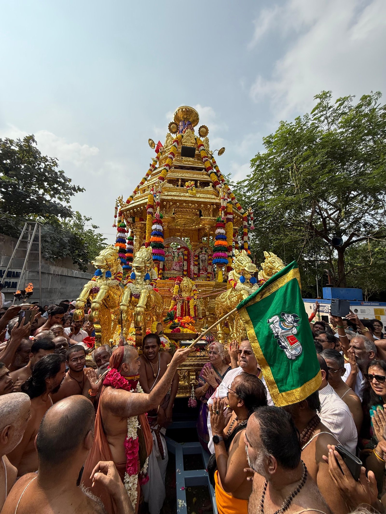 Auspicious occasion of Svarṇa Rathārpaṇam (Golden Chariot Offering) to Śrī Ekāmbranātha Swāmy by Pujyashri Shankaracharya Swamigal - Vellottam of the Swarna Ratham being performed from #Orikkai to #Kanchipuram commencing with the blessings of Shri Kanchi Kamakoti peetadhipati Jagadguru Pujyashri Shankara Vijayendra Saraswathi Shankaracharya Swamiji at Sri Mahaswami Manimandapam, Orikkai- 6 Dec. 2025