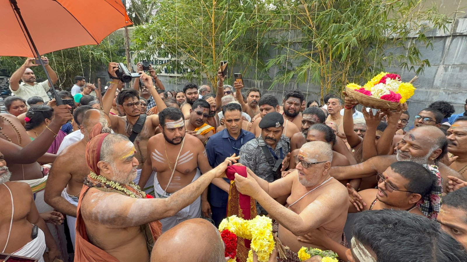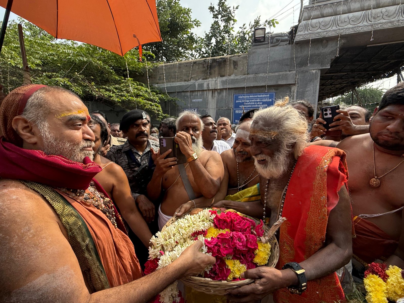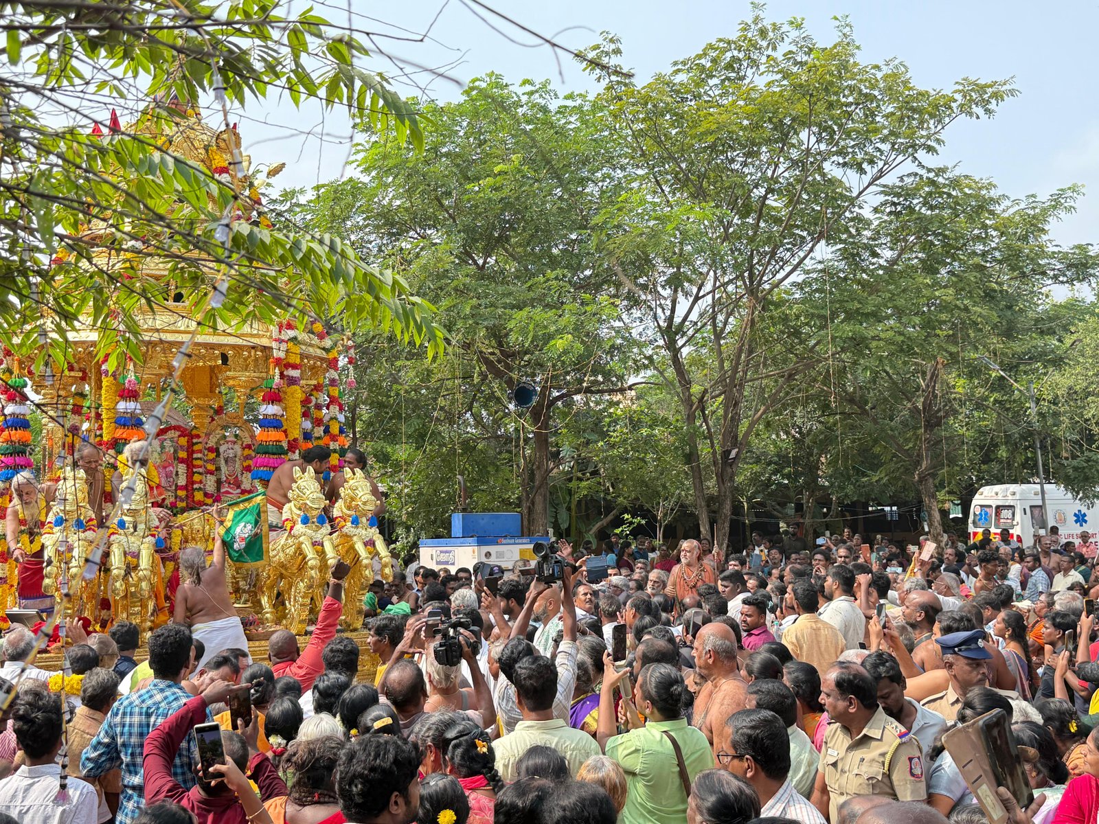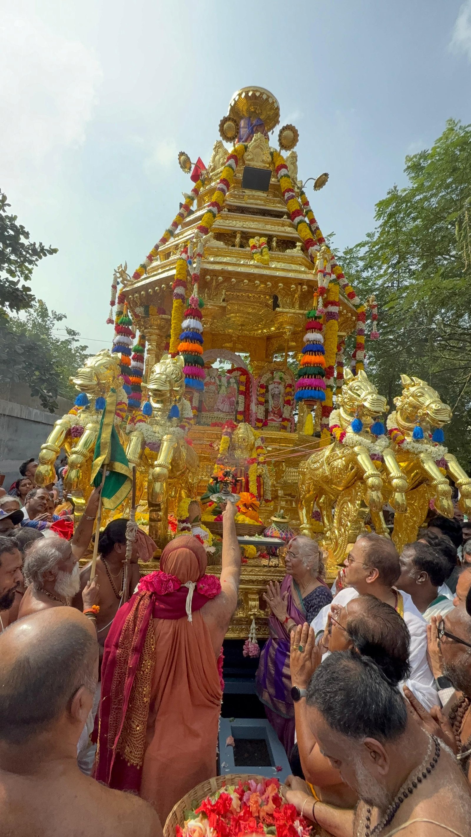 Auspicious occasion of Svarṇa Rathārpaṇam (Golden Chariot Offering) to Śrī Ekāmbranātha Swāmy by Pujyashri Shankaracharya Swamigal - Vellottam of the Swarna Ratham being performed from #Orikkai to #Kanchipuram commencing with the blessings of Shri Kanchi Kamakoti peetadhipati Jagadguru Pujyashri Shankara Vijayendra Saraswathi Shankaracharya Swamiji at Sri Mahaswami Manimandapam, Orikkai- 6 Dec. 2025