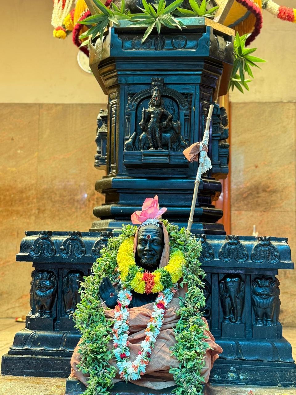 Veda Parayanam, Visesha havans, and various pujas were performed. Visesha pujas and harati was offered at the brindavanam. In the morning, Pancharatna Kritis were rendered. Teertha Narayana puja was performed. Prasadams from Sri Kanchi kamakshi Ambal Devasthanam, Tirumala Sri Venkateswara Swami Devasthanam, Tirupati and other temples were offered at the brindavanams. Sangeeta Samarpanam and Swarna Rathotsavam were performed in the evening. After harati at the adhistanams, the Swarna Rathotsavam was performed. A large number of devotees from far and wide participated in the mahotsavam and received the blessings of Pujya Acharyas.
